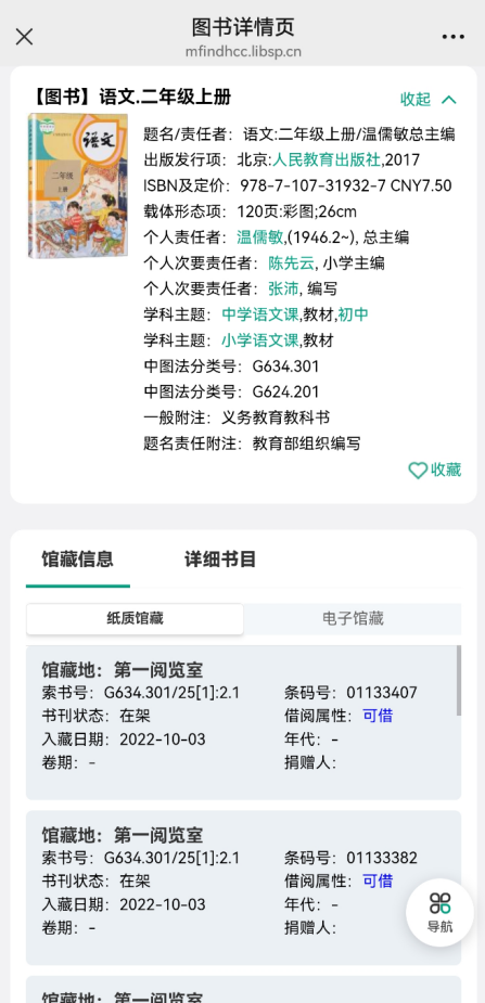 通过以上方式查询图书后点击图书即可查看图书在馆信息,到对应书库进行借书
