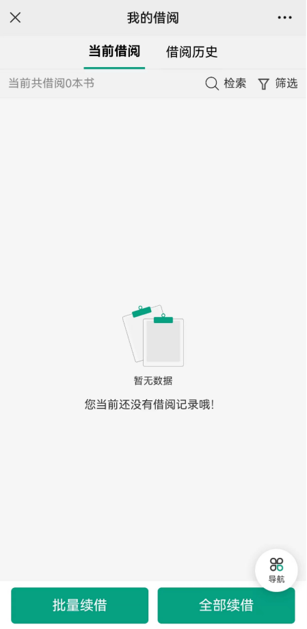 点击我的借阅,查询在借图书信息和借阅历史信息,可按照借阅规则规定进行图书续借