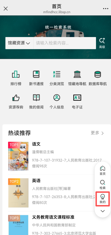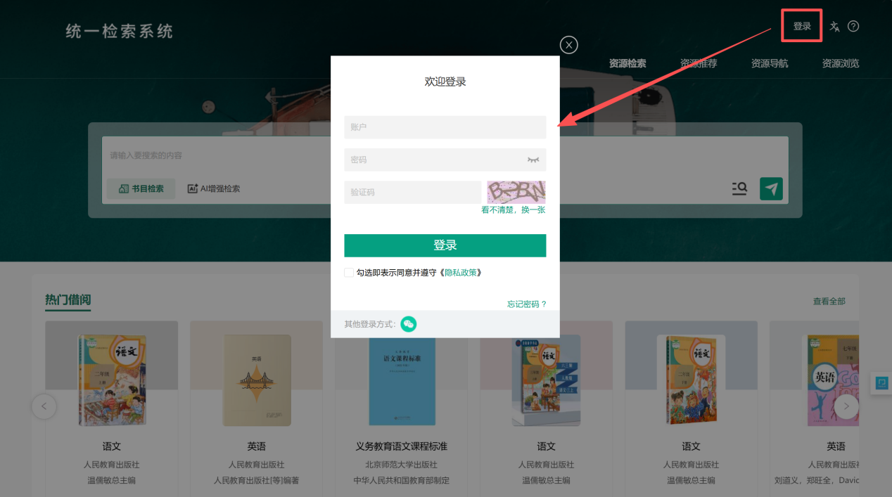 进入需要登录,账号:读者证号,密码:@Hcc+读者证号。
